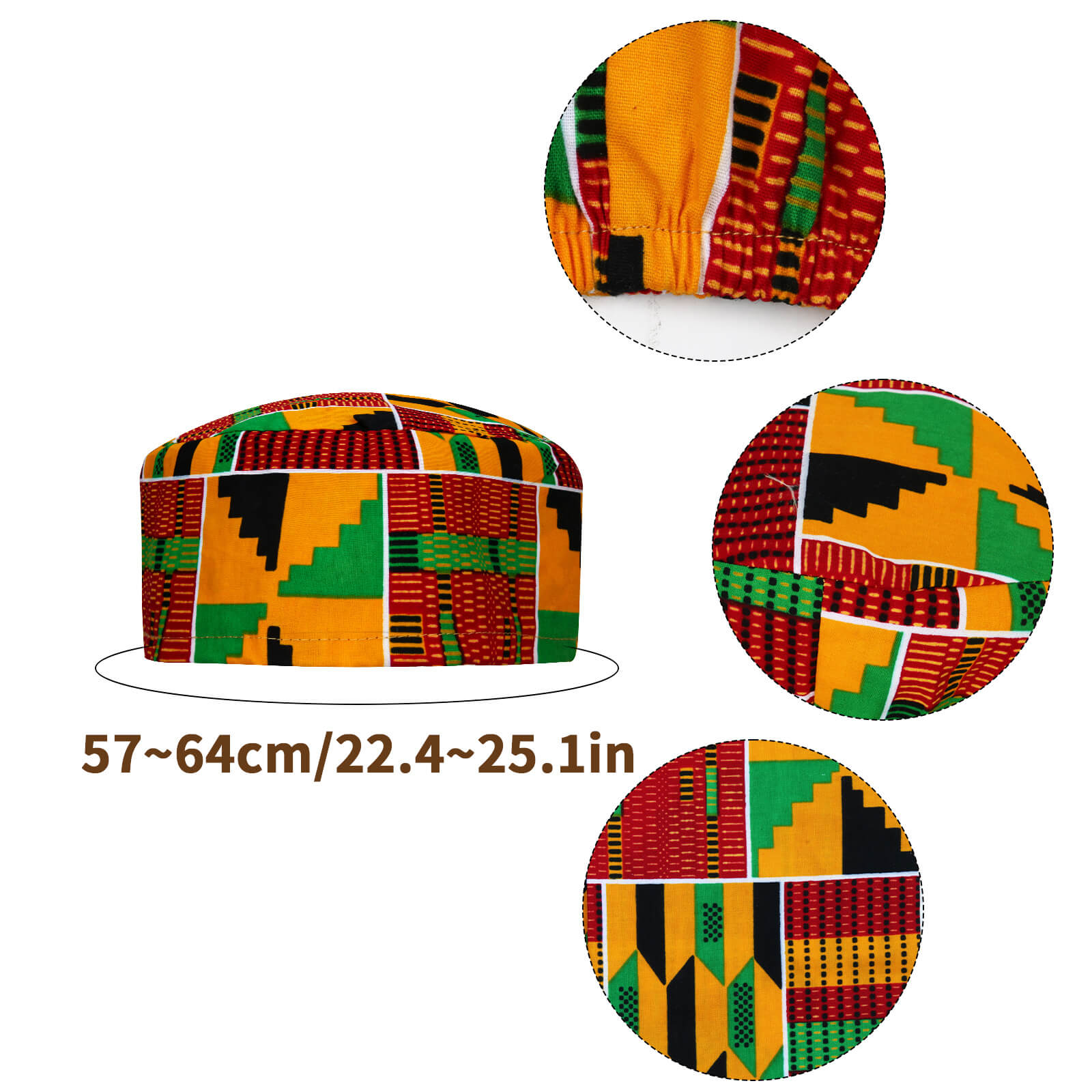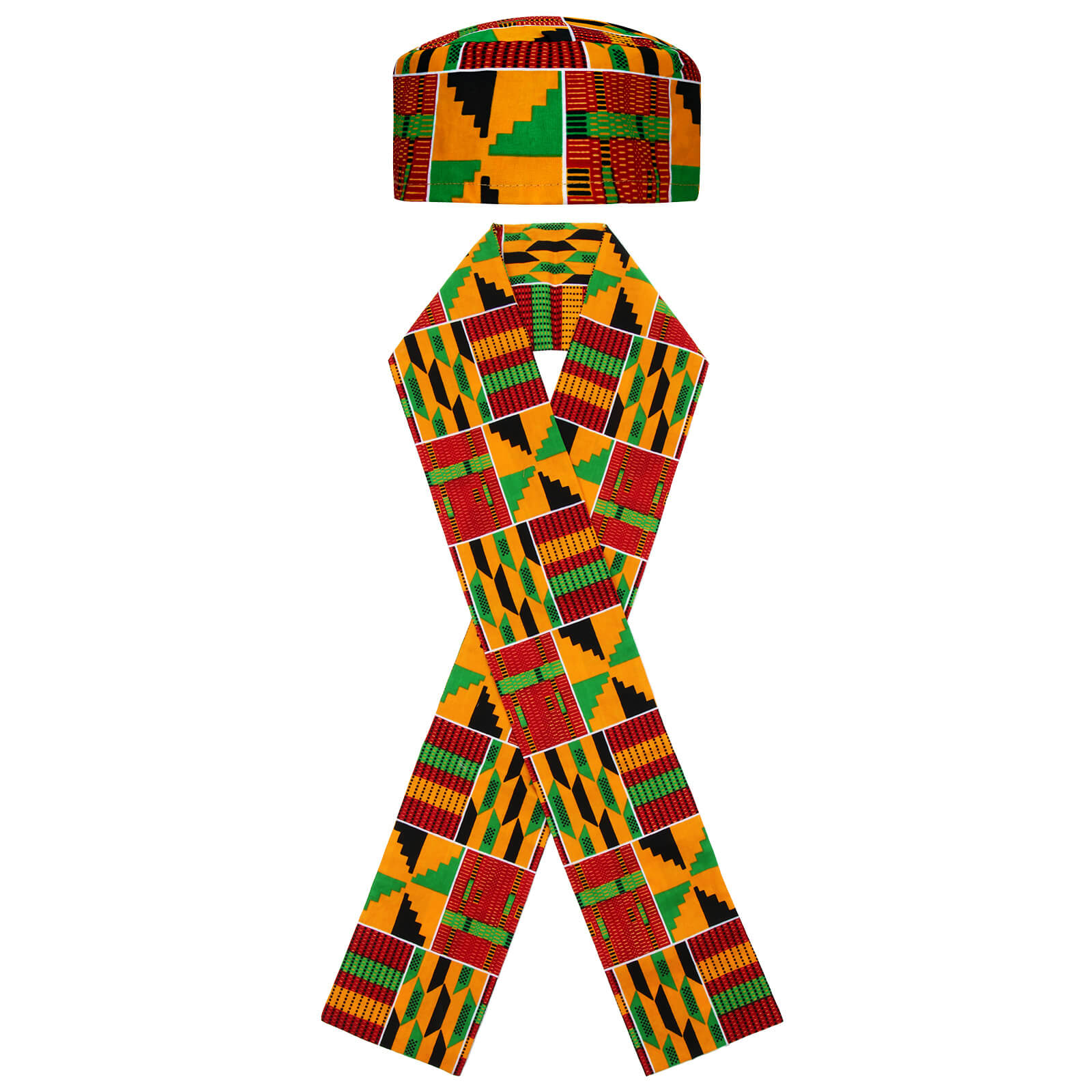 African Kente Pattern Kufi Men Hat and Kente African Print Stole Sash for Black History-Takerlama