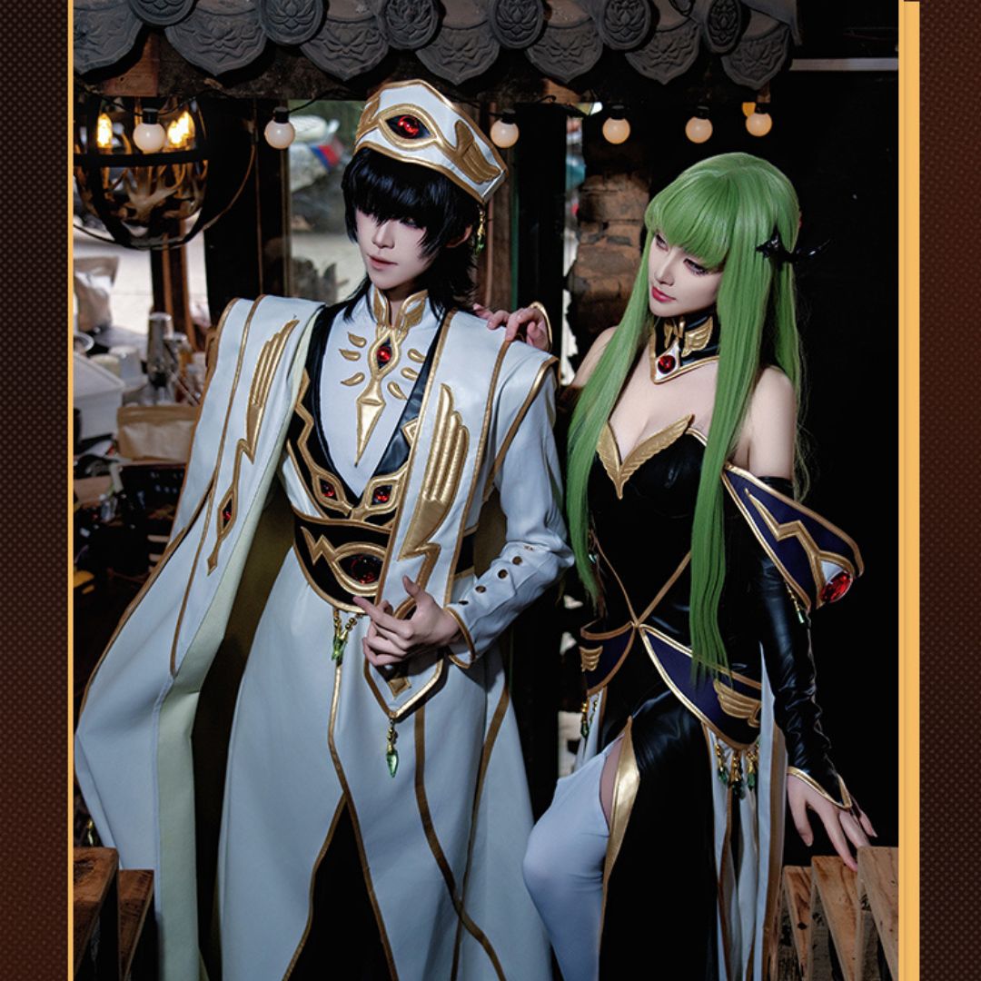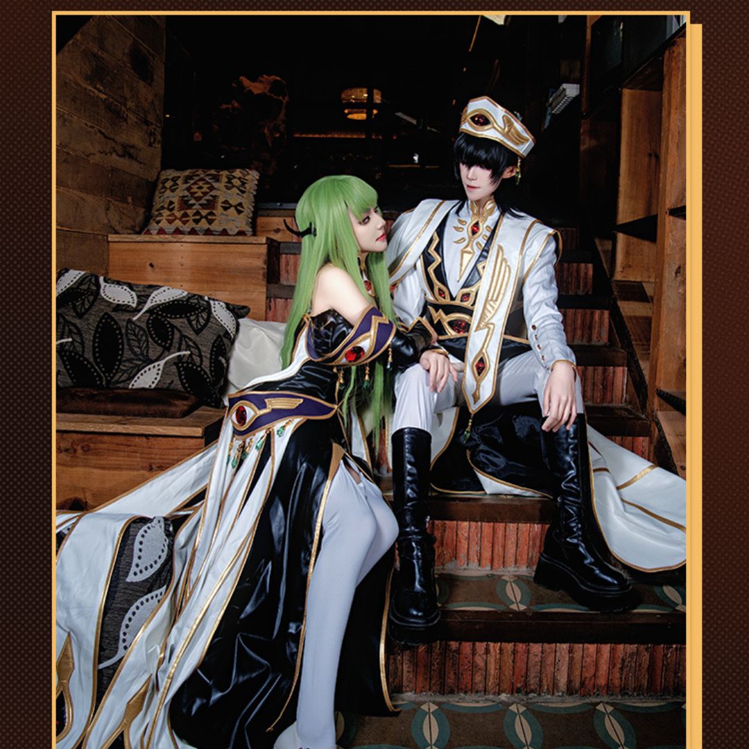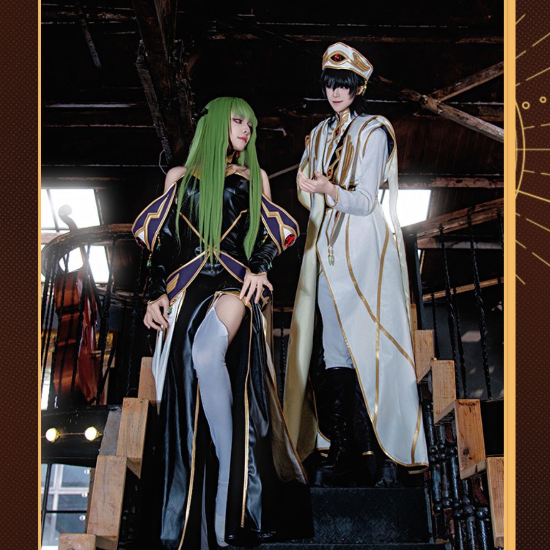 Get ready to rule the world with this stunning Code Geass C.C. Empress Outfit Cosplay Costume! Inspired by the iconic character from the hit anime series, this detailed costume includes a beautiful dress, crown, sleeves, neck ornament, ear ornaments, and socks. Perfect for any cosplay event or photoshoot, this costume is sure to make you feel like royalty.