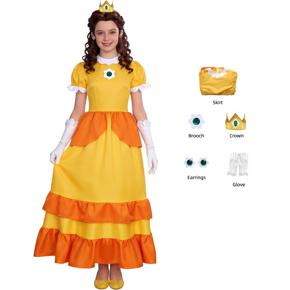 Embrace the vibrant spirit of Princess Daisy with the Takerlama Princess Daisy Dress Super Mario Cosplay Costume. Meticulously designed for both adults and children, this ensemble captures the iconic look of the beloved character from the Super Mario franchise. Ideal for Halloween, cosplay events, comic conventions, theme parties, and carnivals, it delivers an authentic replica for fans seeking to embody Daisy's energetic personality.