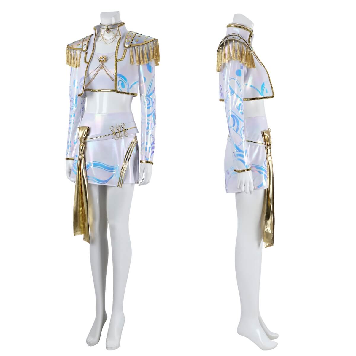 Channel your inner Mira with this stunning white suit cosplay costume! Inspired by the iconic K-pop group, Kpop Demon Hunters, this outfit is perfect for any fan looking to embrace their inner warrior. With its intricate details and bold design, you'll be sure to make a statement wherever you go.